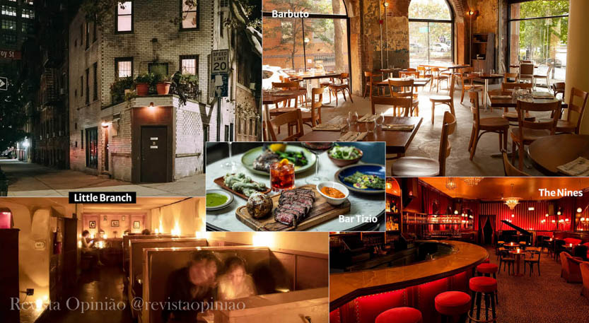O Barbuto, de Jonathan Waxman, um dos grandes chefes americanos. Ele já existe há muito tempo e agora ele acabou de abrir uma segunda versão do Barbuto no Brooklin, dentro do One Hotel. Tem o Bar Tizio, também é uma criação do Jonathan Waxman, que tem uma de vinhos incrível e eles servem comida também. Fica no West Village e é também um dos meus lugares favoritos, hoje em dia. Um outro lugar que é que também é imperdível é o The Nines, um piano bar no Soho, dos mesmos criadores do Indochine, que é um marco na gastronomia nova-iorquina, perfeito pra um jantar a dois.