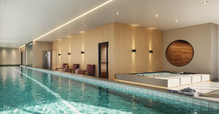 Complexo Wellness: piscina coberta climatizada com raia de 25 m no rooftop, além de espaço fitness panorâmico no rooftop, endless pool, sauna úmida e seca, beauty care e sala de massagem.